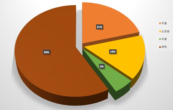 宇通和中通的全称是“郑州宇通客车股份有限公司”(下文简称宇通)和“中通客车控股股份有限公司”(下文简称中通),也就是说两家都是做客车业务的,只有比亚迪“算是”乘用车企业。