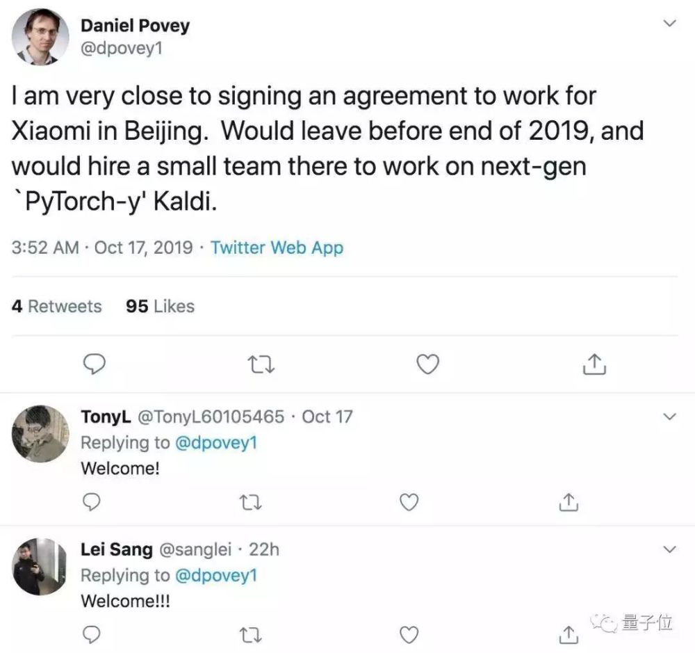 Daniel Povey发推特表示,即将与小米签订合约,预计将在年底前正式入职,并将成立一个全新的研究小组。