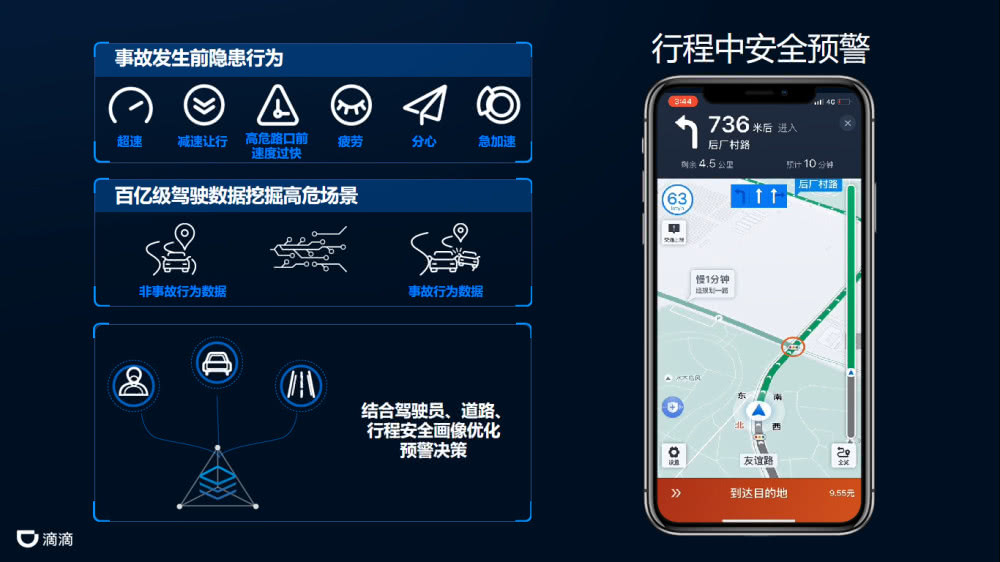 (滴滴将AI技术应用于出行安全场景,能在交叉路口等相对危险的地带提前提醒司机注意驾驶安全)