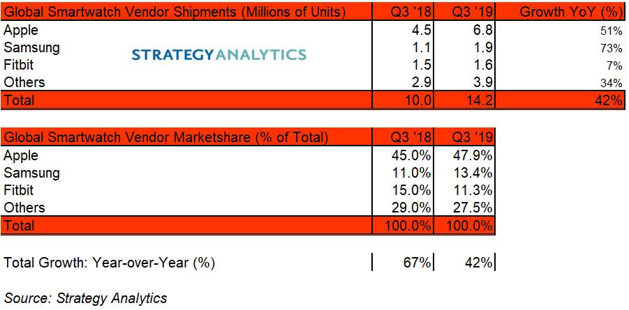 苹果、三星和Fitbit瓜分了超过70%的智慧手表市场