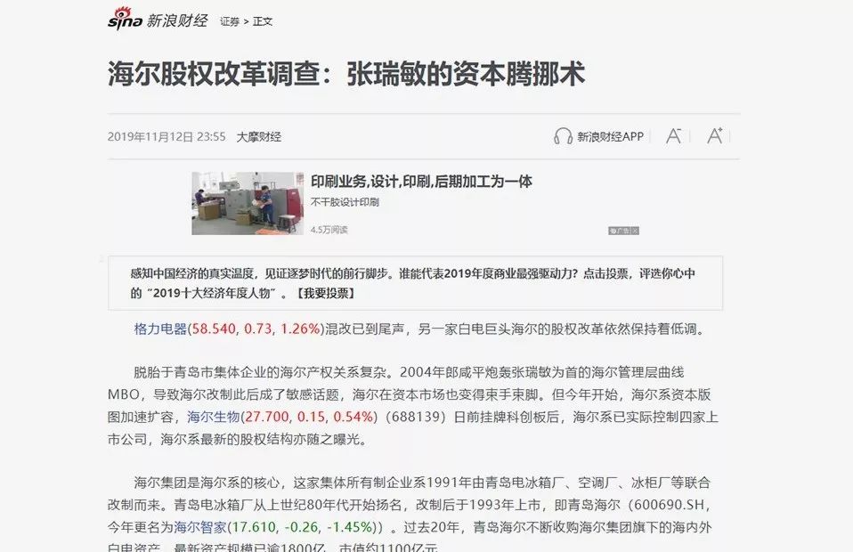 一个月前,伴随格力混改落定,海尔成为家电三巨头中唯一尚未私有化的企业。