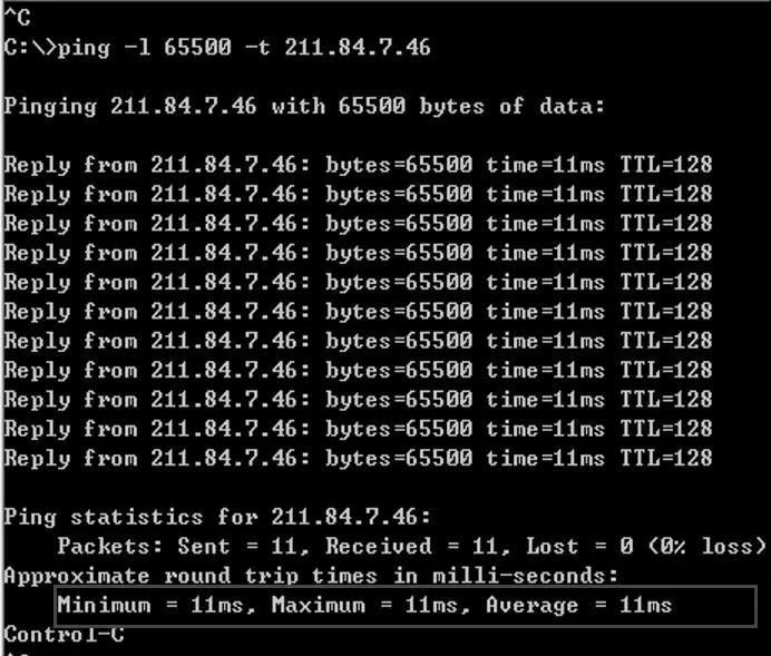 比如,ping -l 65500 -t 211.84.7.46