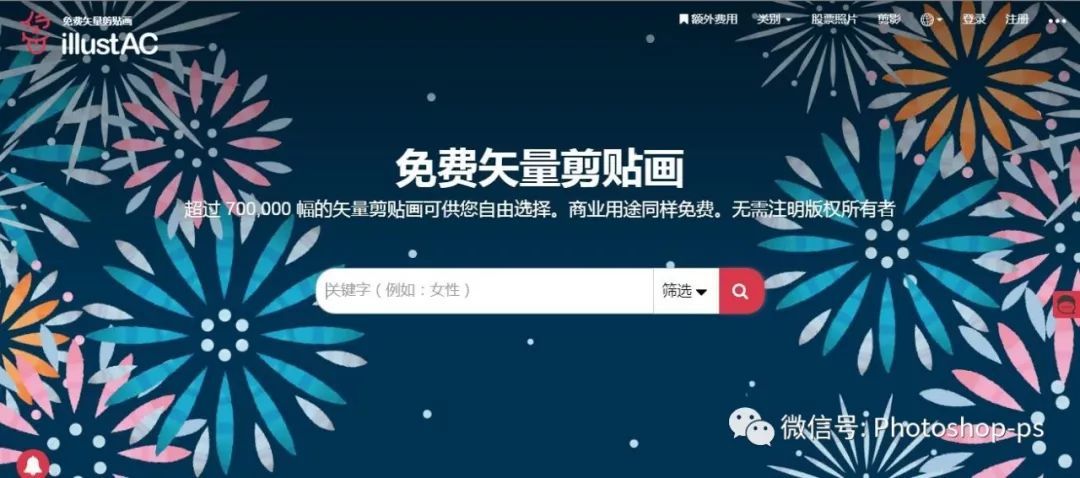 illustAC 是一款免费插图矢量图图库,来自和 silhouetteAC 相同工作室,收录各式各样的素材,类别包括商业、医疗、人物、动植物、交通工具、季节、美食、明信片、节庆、图示等等,依照网站说明:目前一共有超过 90,000 张插图艺术向量图提供使用者免费下载!可以商业使用,而且无须标示来源及作者。重点是,它也有中文!