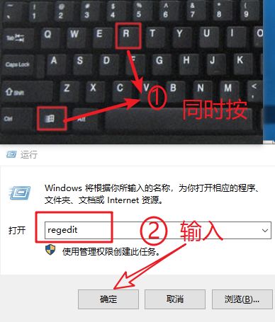 1.在键盘上按【win+R】,输入【regedit】,点击【确定】。