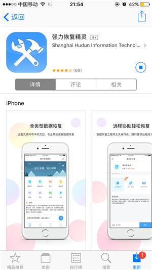 ③若删除应用时导致已保存的图片或其他重要信息丢失,及时到App Store中下载“强力恢复精灵”找回数据。