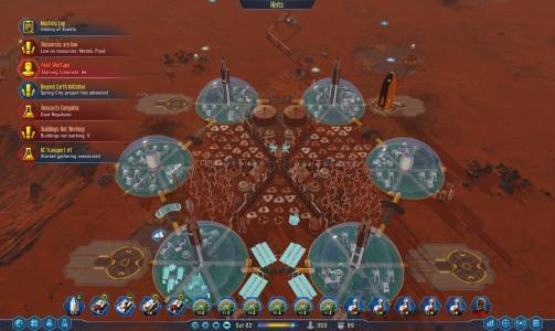 角色可能会死于营养不良,如果“理智”等级太低的话也有可能自杀,这个场景将会用文字来描述,然后画面上的居民会直接躺下变成尸体。玩家可以建造炮塔来保卫基地,敌对公司将会前来攻击,短暂的攻击场景中将会出现导弹和爆炸物。殖民者的不同角色属性将会影响生产力,其中包括酒瘾等。