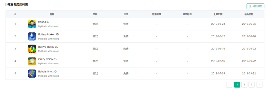 根据开发者变更记录显示,游戏原开发者为Mykhalio Vihristenko,于2020年1月2日变更为Voodoo。而在Mykhalio Vihristenko已发行的应用列表中看到,从2019年5月开始发行休闲游戏,目前已累计15款。