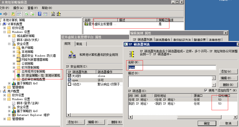 星外IP策略检查是否指派,检查53端口是否开启