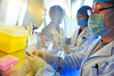2013年,在北京市疾控中心传染病地方病控制所实验室,工作人员正准备使用检测H7N9禽流感病毒的试剂。吴镝/摄