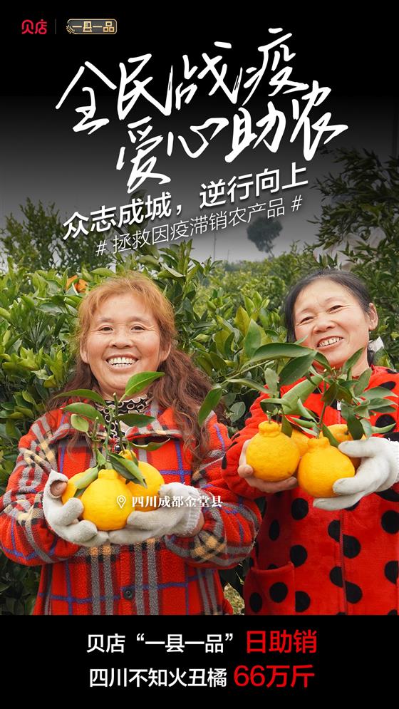 2月以来,从不知火丑桔到海南贵妃芒,再到麻阳的冰糖橙、丹东的牛奶草莓、高原红富士等诸多农产品,在“全民战疫,爱心助农”专项活动+助农“5+1”计划之下,贝店各类流量支持、运营指导、入驻绿色通道、智慧供应链开放、金融支持等扶持动作频出,为全国各地大量因疫情滞销的农产品打通了销路。