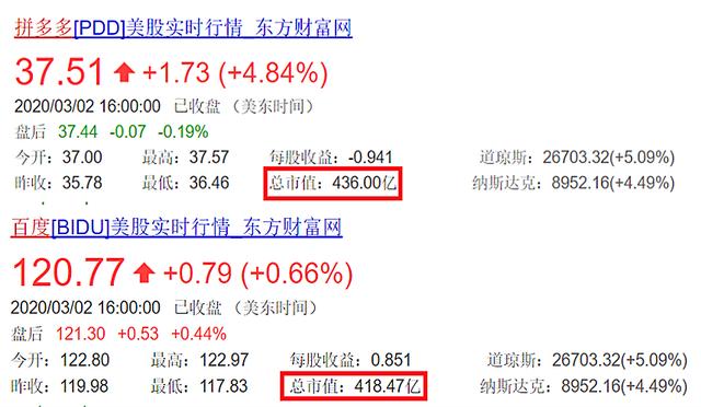 拼多多市值反超百度!成功跻身中国第五大互联网公司