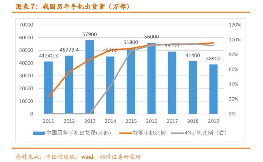 在5G助推之外,我国智能手机市场在经历了出货量连续四年下降之后,也迎来了自然的换机周期:2019年我国智能手机出货量3.89亿部,同比下降6.2%,创下9年新低。