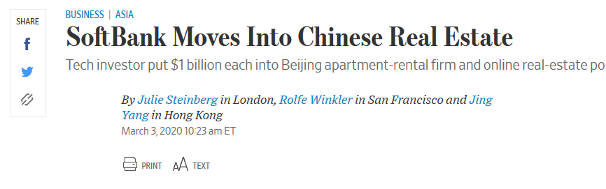 观察者网注意到,此前软银曾花超百亿美元投资商业办公租赁企业WeWork,但不幸失败,此次寻求投资同为租赁行业的中国房地产行业,能取得预期效益吗?