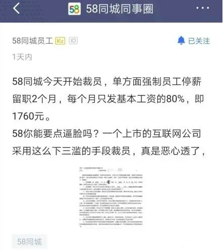 匿名员工晒“待岗协议”称变相裁员,58同城回应:消息不实,正常的业务调整