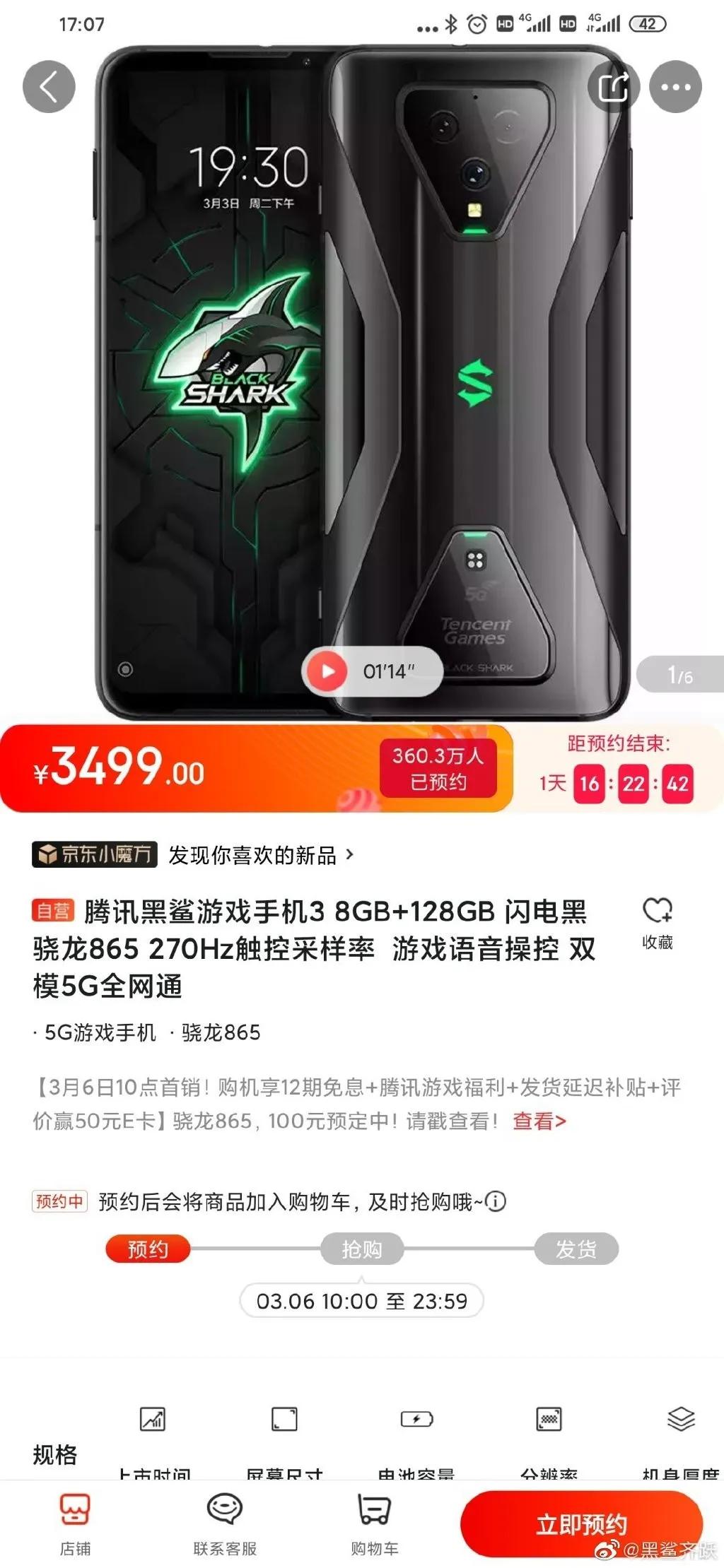 真香也反映在了网友们的热情上:截止到5号下午17点,黑鲨3的预约量就已经突破了360万部。