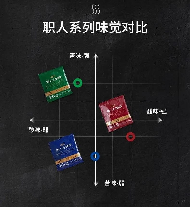 UCC在咖啡领域已经精耕多年,与其他品牌不同的是,它将“职人”作为卖点,直接表明了挂耳咖啡的目标群体——职场人士。酸味较淡的“小绿包”在国内市场上被众多咖啡爱好者“种草”。