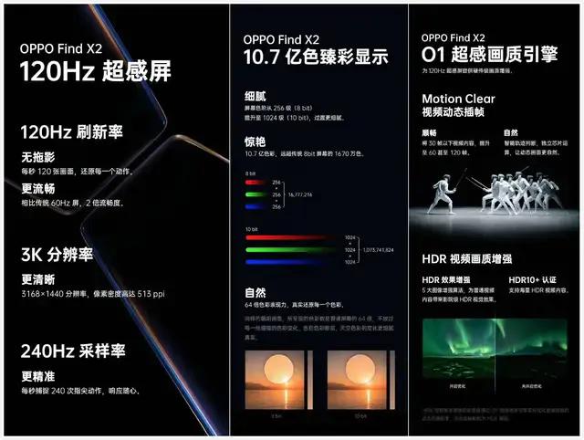 以上的用料都能帮助Find X2提升用户的观屏或者触屏体验,但还并非全部。事实上,OPPO这次还向Find X2引入了O1超感画质引擎,支持视频动态插帧,可以将低帧视频最高提升至120帧,带来更为流畅的视频显示效果。