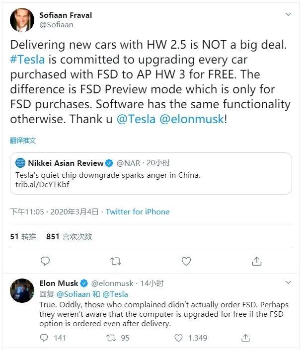 不过,不管处理方式如何,特斯拉“减配”事件的发生将使其在中国消费者的形象大打折扣。日本Gordian Capital的高级投资组合经理Chris Redl对特斯拉的举动表示沮丧: “令人难以置信的是特斯拉将此归咎于供应链问题,自2019年4月以来制造的所有特斯拉都应该安装HW3。” 他指出,特斯拉在两周前筹集了数十亿美元的资金,当时并未透露任何供应链问题。