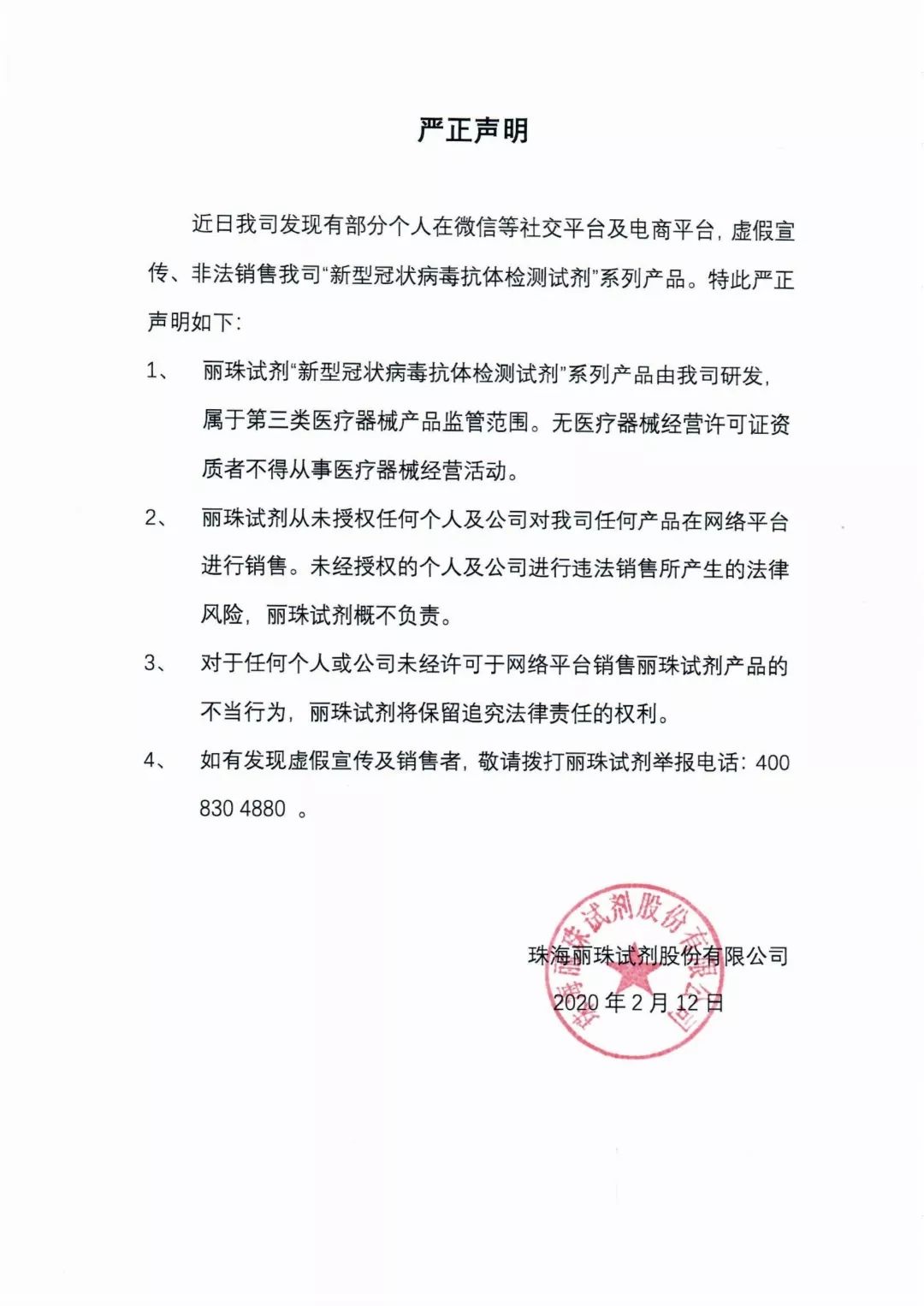 丽珠试剂发声明: