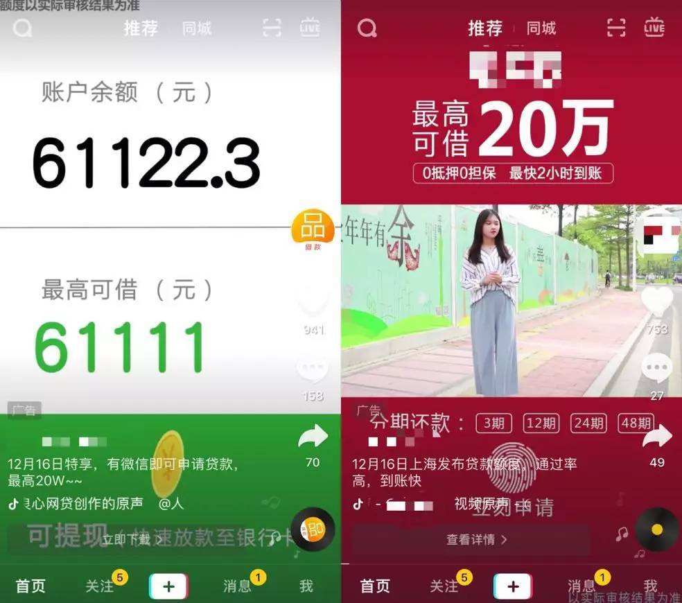 要注意在一些短视频平台里面你所看到的信息,比如说抖音里广告,包括手机短信都叫做广告,他不是真正属于你的真实信息,甚至有的广告更夸张,比如说你有多少额度点击链接申请即可,然后又有贷款广告说输入手机号就能知道自己有多少额度,很多人急用钱呢,那很多人都把自己的手机号输入进去一测,结果就上了征信了,所以我们以后一定要切记,不要胡乱的随便去点广告信息。