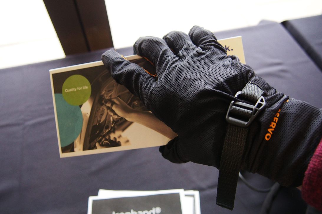 Ironhand手套的设计理念主要是为了减少重复性应激损伤的可能性,比如一个工人在装配线上用钻头安装螺栓,可能安装不了几辆车手指就会感觉到酸痛,Ironhand手套就可以显著的减轻这种情况。