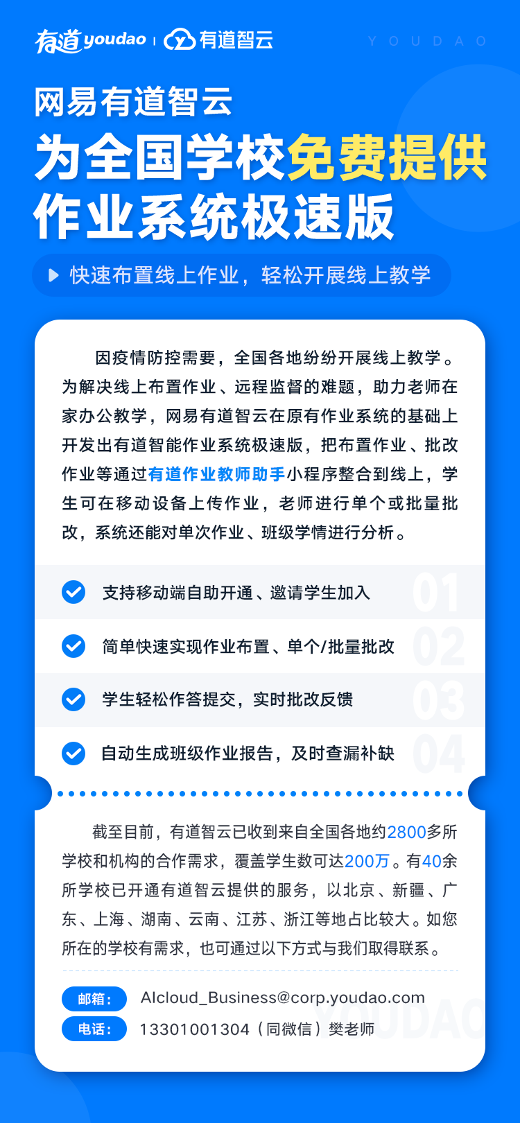网易有道智云向全国中小学校免费开放极速版作业系统
