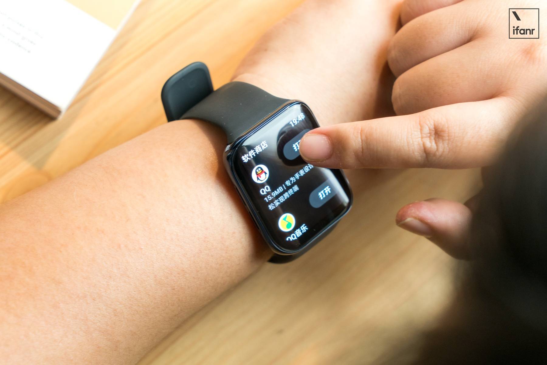 所以在系统中,OPPO Watch 确实也内置了一个应用商店。目前提供了 QQ、QQ 音乐、Fit、咕咚和美柚在内的 8 款第三方应用。