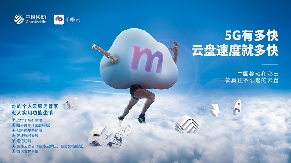 据了解,“和彩云”是是中国移动旗下的个人云存储服务,用户可以通过手机、电脑等不同终端将照片、视频等重要文件上传到和彩云,还能随时随地对文件进行查看、管理、下载,并且可实现跨平台操作。此次全新升级的“和彩云”更是拥有五大看点: