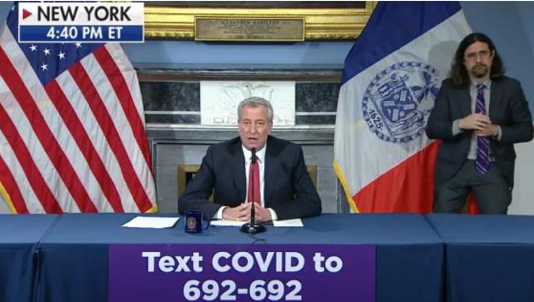 纽约市长德布拉西奥22日表示,如果特朗普总统不尽快采取行动,美国民众将付出“生命的代价”。美国目前三分之一的新冠肺炎确诊病例在纽约,这一情况短期内不会得到改善,“事实是,形势正在恶化”。