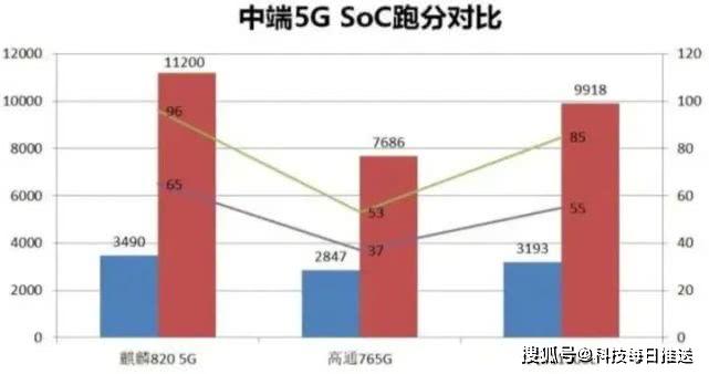 而在华为的强项5G性能方面,骁龙765G和麒麟820的差距只会更大。