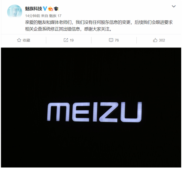 而魅族官方的回应来的很及时,今天官方就紧急回应称此事与事实不符,近期公司没有出现任何的股权变动。魅族没有任何股东信息的变更,后续会要求相关企查修正出错信息。