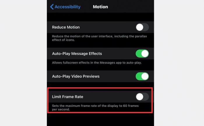 国外用户“@JunoTecho”给了一个截图,设置的顺序是:“设置”-“辅助功能”-“运动”,则可以看到一个选项,可将显示器的最大帧速率限制为每秒60帧,也就是限制为60Hz的刷新率,那这个限制内容就代表着是有后期的选项,也就是会有选择项,比如更高的刷新率。