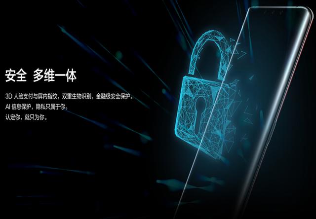 3D人脸支付。这是苹果的看家本领,华为也把这项技术带到了华为 Mate 30 RS版上,再加上屏内指纹的双重生物识别,在安全性上得到进一步提升。还具有AI信息保护功能,时刻保护你的隐私。真香之三。