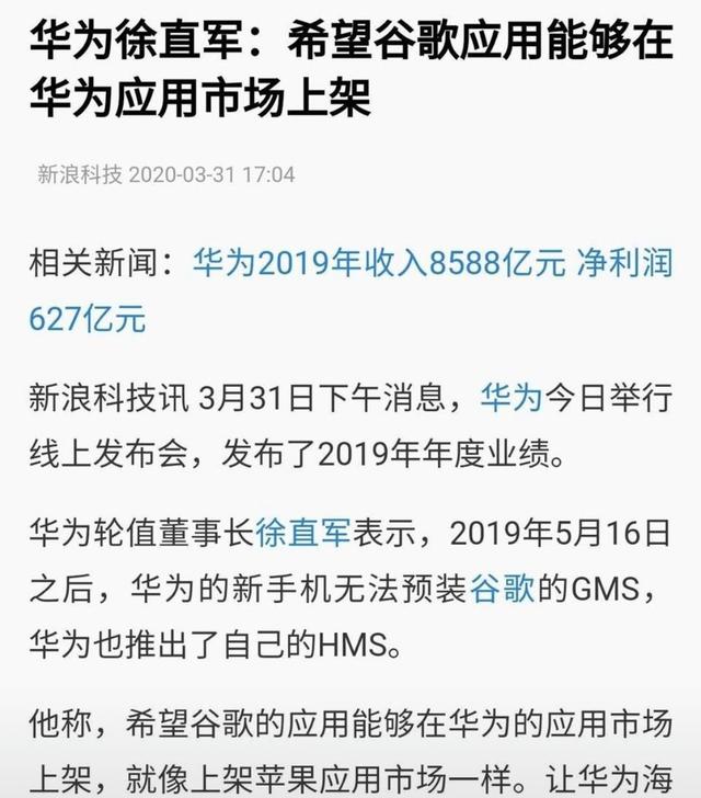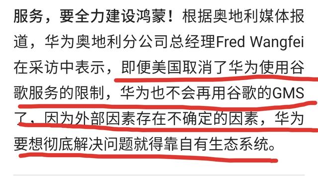 此前,华为一名驻奥地利的高管曾在接受媒体采访时表示,华为内部已经决定,即使美国取消禁令,华为也不会继续使用谷歌GMS服务。