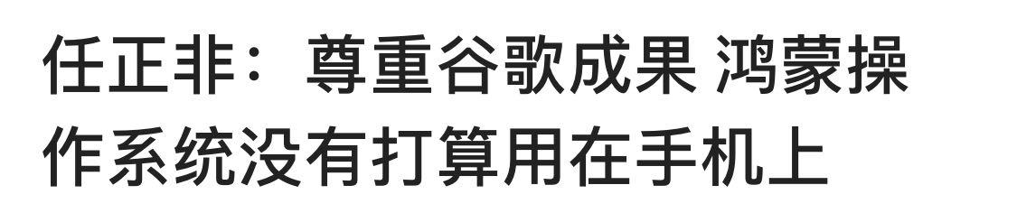 然而,就在外界对华为的鸿蒙系统充满期待之际,任正非却改口了,在一次采访中,他表示,华为尊重谷歌的成果,鸿蒙操作系统没有打算用在手机上。