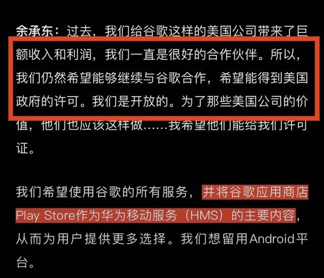 然而,让我们意外的是,不久前,余承东在接受海外媒体《连线》采访时,却改口了,表示华为仍希望能够继续跟谷歌合作,希望能得到美国政府的许可。