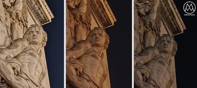 可以从图中看到,夜间弱光环境拍摄,华为P30PRO的优势非常明显,完全和另外两款手机拉开了质的差距,华为P30PRO的样张亮度更高,画面纯净度更高,细节还原也更准确,而三星S10则排在第二,IphoneXmax基本就是惨不忍睹了。