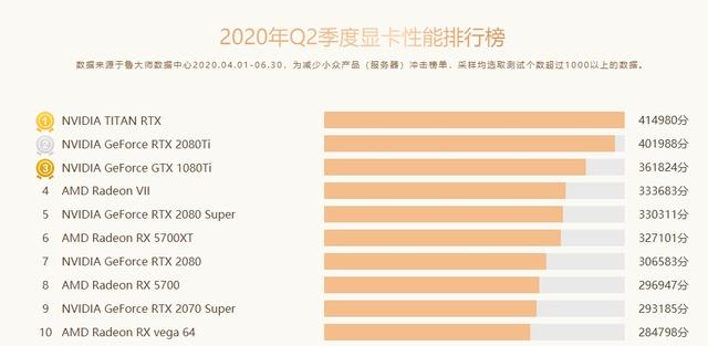 鲁大师发布2020年第二季度显卡性能榜单,前三名均来自英伟达