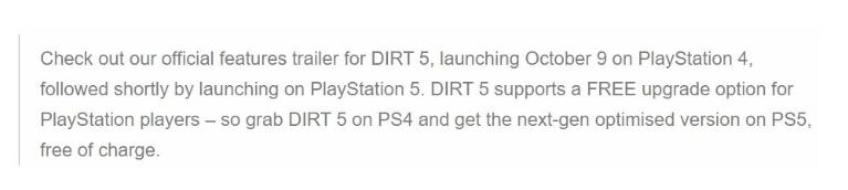 PS5发布后,《尘埃5》开发商表示用户可直接从PS4版本免费升级