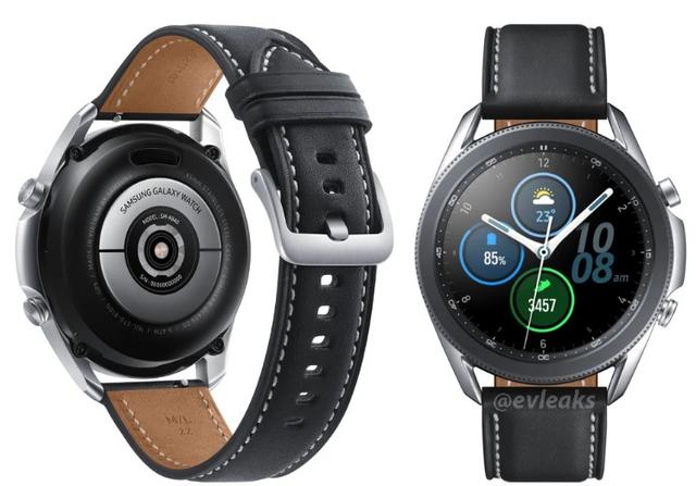 在这张泄露出来的高清渲染图中可以看到,三星 Galaxy Watch 3可能会有1.2英寸屏幕以及1.4英寸屏幕的两种版本,其外观设计ID依旧是采用了三星 Galaxy Watch 3一贯的圆形表盘,而在右侧则有两个表冠按钮设计,而在腕代上面看起来似乎是使用的真皮腕带。