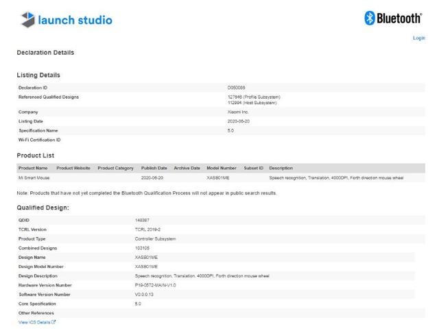 而这款小米全新的只能鼠标,最早是被曝光在蓝牙技术联盟(SIG)的认证网站上的,其对小米全新的只能鼠标认证的型号为XASB01M。