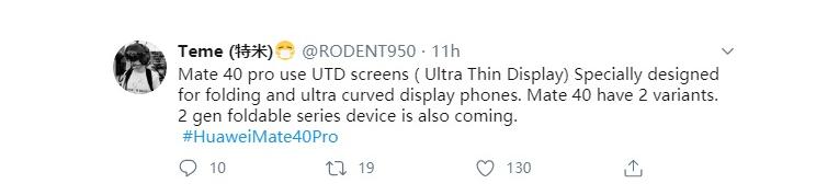 而其中备受关注的机型,华为Mate40 Pro算是其中之一了,最近就有最新的爆料称下半年的华为Mate40 Pro很有可能将会采用超大曲率以及可能是专为折叠屏手机所准备的一种UTD屏幕。