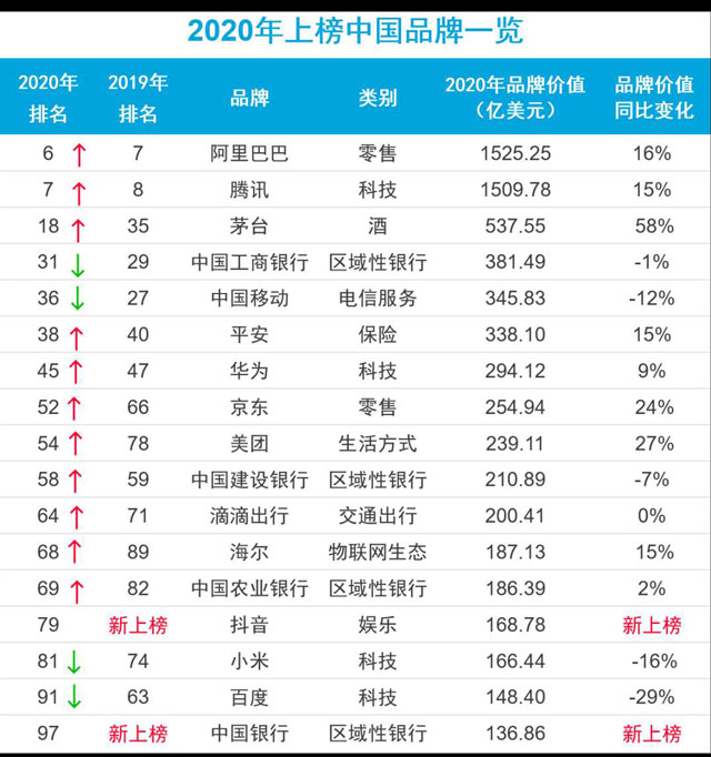 2020全球品牌100强公布:腾讯华为逆市上涨,小米连续两年入榜