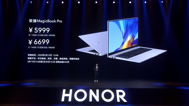 价格方面,荣耀Magicbook Pro i5版本从5999元起售,i7版本从6699元起售。5月19日10:08正式开卖, 首销当日可享400元优惠。