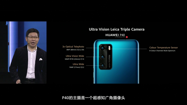 这次华为P40系列的主要看点还是拍照。三款手机的主摄都是5000万像素的超感知广角摄像头,f/1.9的光圈,P40和P40 Pro还增加了OIS光学防抖。华为P40拥有800万像素的80mm长焦镜头,以及1600万像素的17mm超广角镜头。