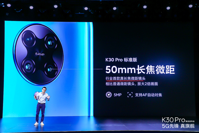 它的前置相机采用了弹出式设计,拥有2000万像素,支持前置延时摄影、120帧慢动作自拍等功能。虽然弹出摄像头是2019年的主流设计,但卢伟冰坦言,K30 Pro可能是5G手机中少有使用弹出摄像头设计。这主要得益于Redmi K30 Pro创新的采用了三层主板架构,大大扩展了机身的内部空间,提高了主板的利用率。因此Redmi K30 Pro在使用了弹出式摄像头的同时,还内置了4700mAh电池,并支持33W快充,标配33W充电器。