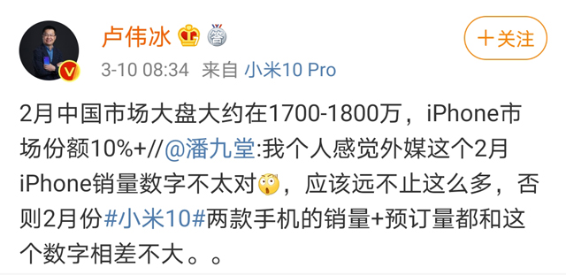 而在主要的手机厂商当中,小米受到影响可能是最小的。这主要是因为小米是托于互联网诞生的品牌,虽然近几年也开设了不少线下实体店,但热门机型仍然以线上销售为主。前不久小米相关人士就无意间对外透露了小米10的国内销量接近50万台,这对于一款上市仅一个月,且价格最低也要3999元的国产手机来说,无疑是一个非常好的成绩。