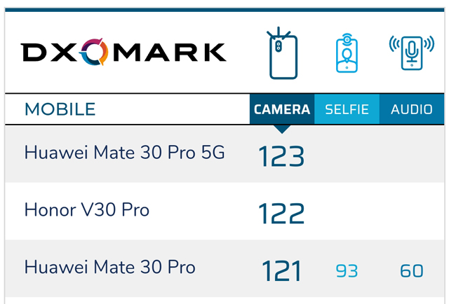 作为对比,华为Mate 30 Pro 5G使用的同样是麒麟990 5G处理器,但是副摄电影摄像头的像素更高,因此视频得分也比荣耀V30 Pro更高,目前仍然以123分的成绩排在第一位。