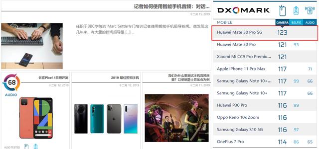 华为Mate 30 Pro 5G刷新DxOMark排行榜 两分优势再度领先小米