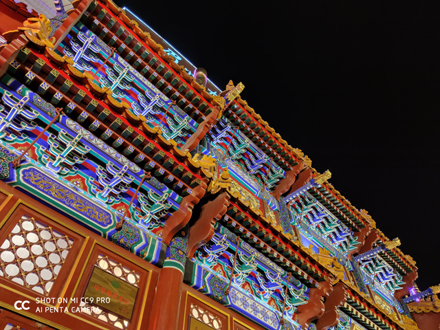 拍摄夜景时,主摄使用“像素四合一”技术,合成为2700万像素,单个像素面积1.6μm。再加上1/1.33英寸的CMOS和7P镜头,不仅夜景画面清晰,而且高光的处理非常到位,整张照片都十分自然。